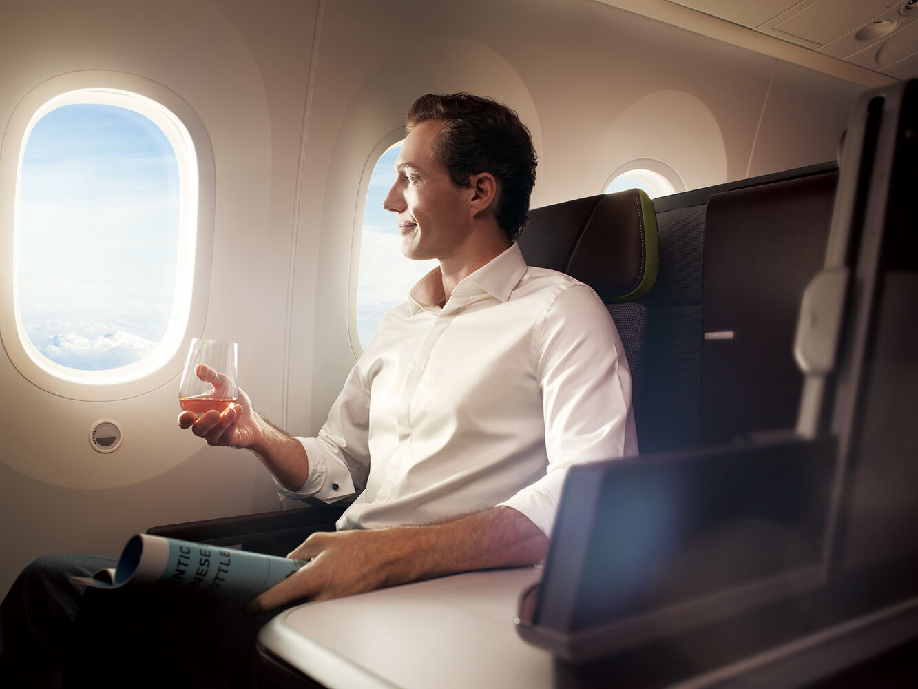 Der Dreamliner bietet dank großer dimmbarer Fenster, leiserer Kabine und moderner Luftfiltersysteme ein großzügiges und angenehmes Raumgefühl. Höhere Luftfeuchtigkeit und ein niedrigerer Kabinendruck belasten den Körper weniger. Diese Faktoren tragen zusammen dazu bei, dass Passagiere weniger Jetlag verspüren.